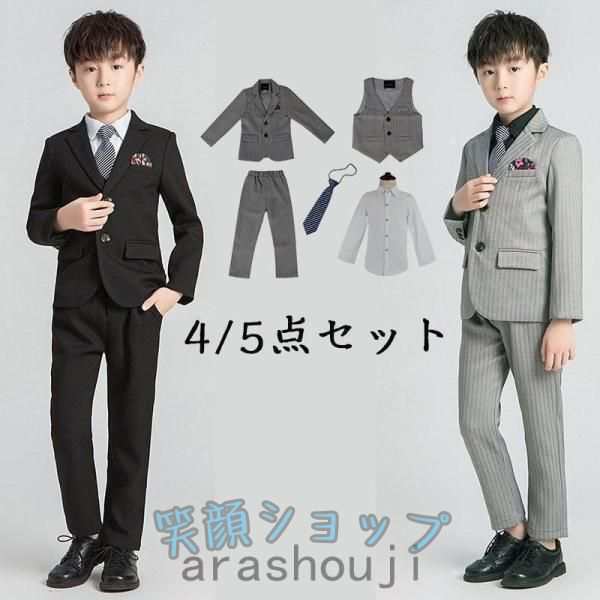 子供服 フォーマル スーツ 入学式 卒業式 4/5点セット 男の子 タキシード キッズ 結婚式 発表会 卒園式 七五三 ジュニア 90 100 110 120 130 140 150 160 170
