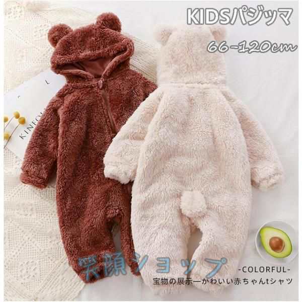 クマちゃん 着ぐるみ ロンパース 裏ボア フード付き ベビー服 新生児 カバーオール 男の子女の子 ボア 寝袋 秋冬 パジャマ スリープウェア 長袖