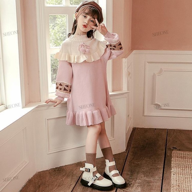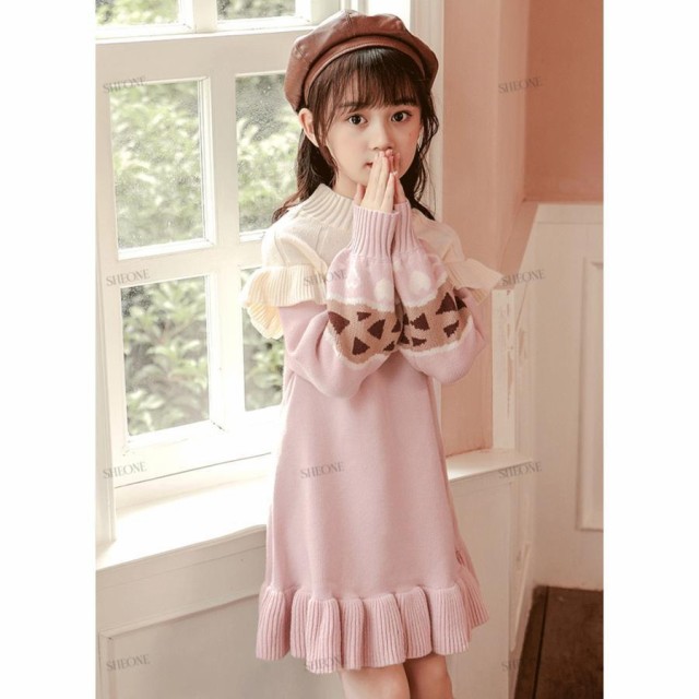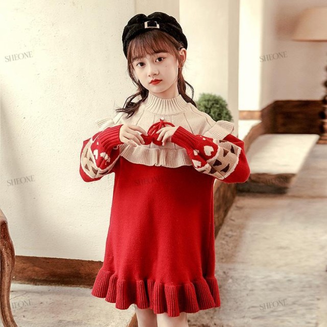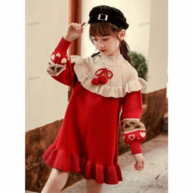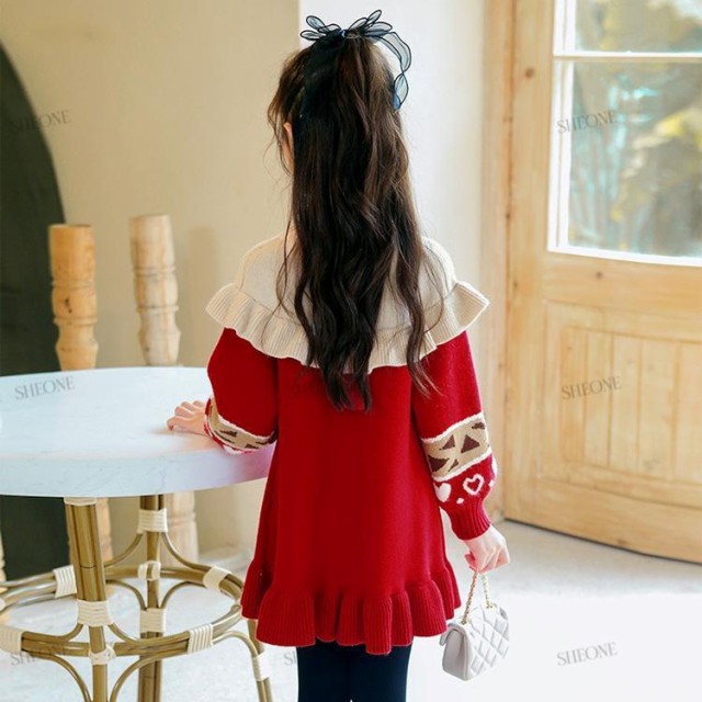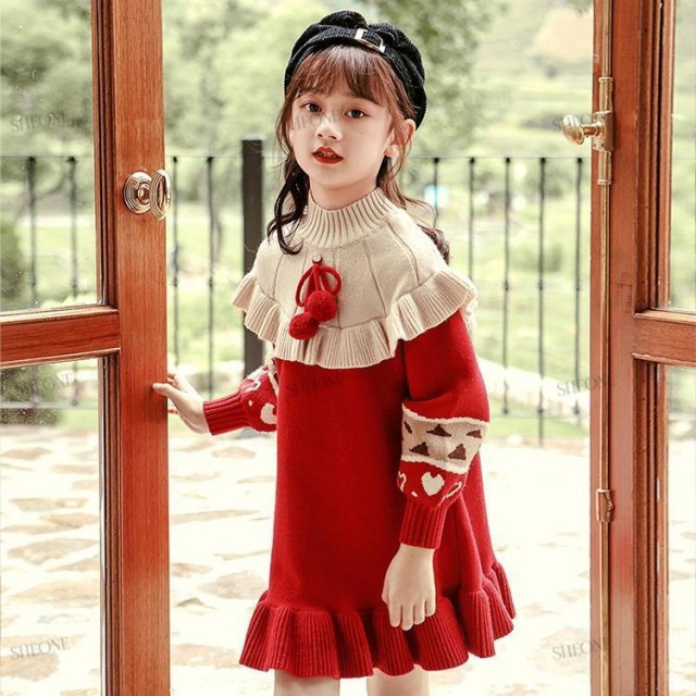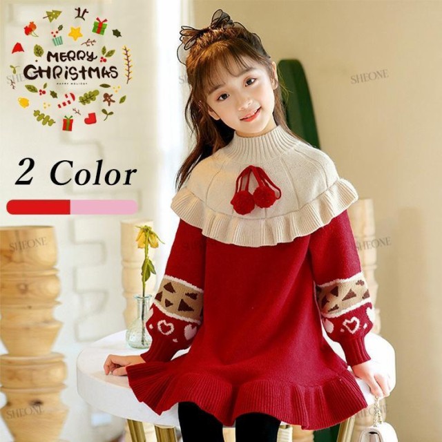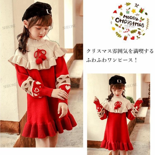 クリスマス ワンピース 女の子 サンタ衣装 キッズ ニットセーター赤 白 レッド 雪だるま クリスマス プレゼント ギフト 大きいカラー ベビー服 可愛い 冬 防寒