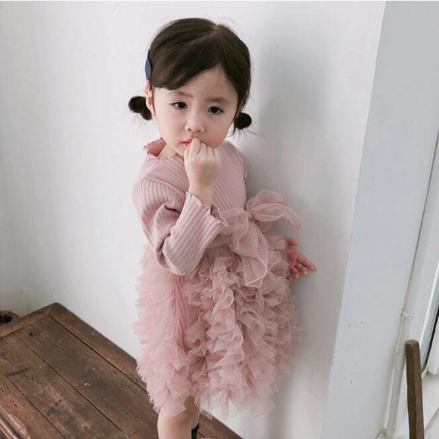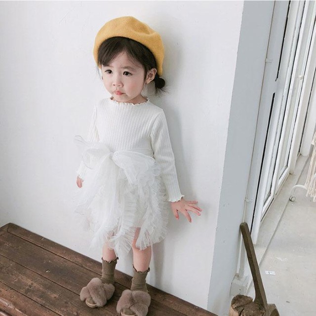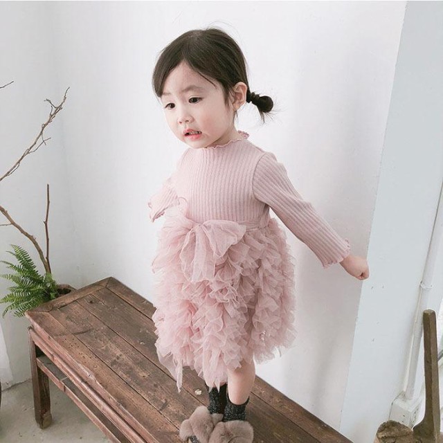 ワンピース チュニック 子供 長袖 春春冬 女の子 子ども 子供服 ベビー服 チュールスカート キッズ オシャレ 保育園 韓国子供服 1歳2歳3歳4歳5歳