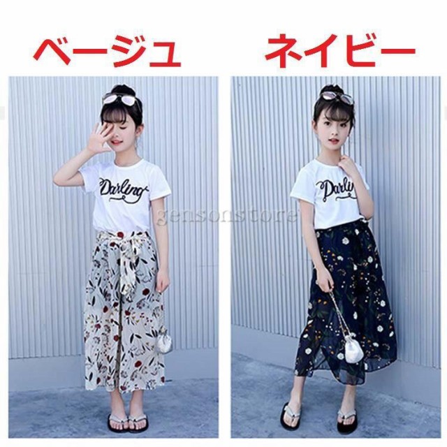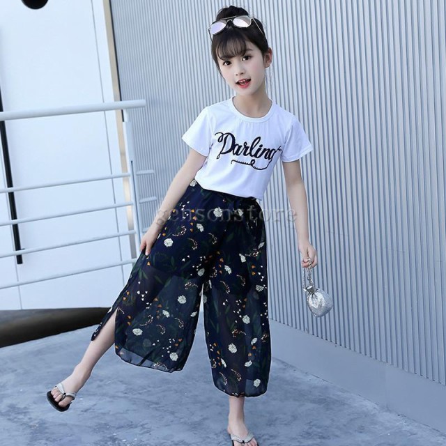 キッズ パンツ 子供服 ジュニア 女の子 夏 シフォンパンツ 花柄 7分丈パンツ ガウチョパンツ ゆったり フレアパンツ ボトムス 120 130 140 150 160cm