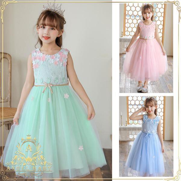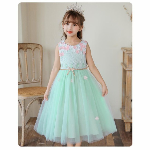 子供ドレス 発表会 ロング 結婚式 フォーマルワンピース ミントグリーン 子どもドレス ピアノ発表会 ジュニア 女の子 ピンク 水色 コンクール