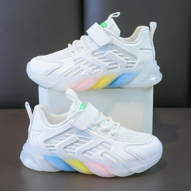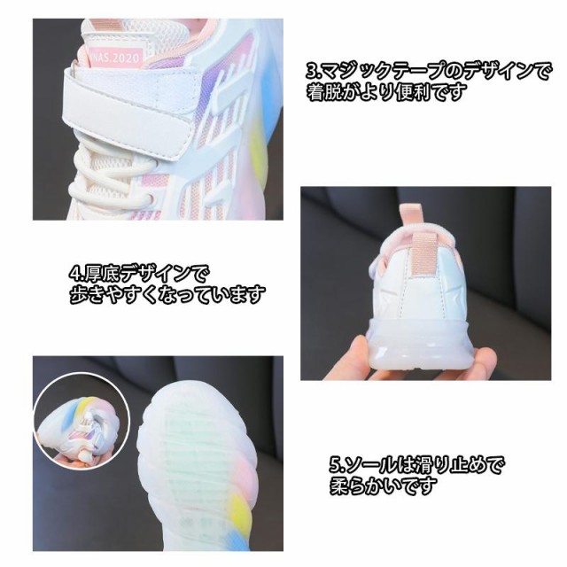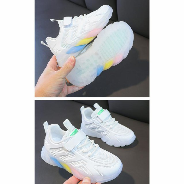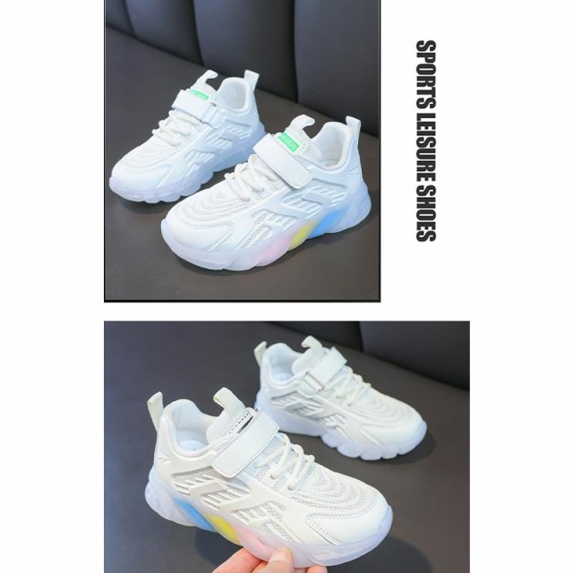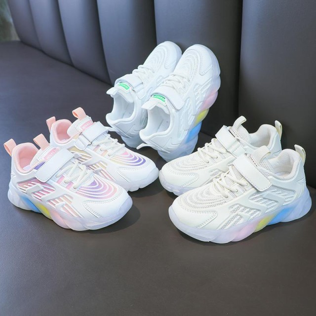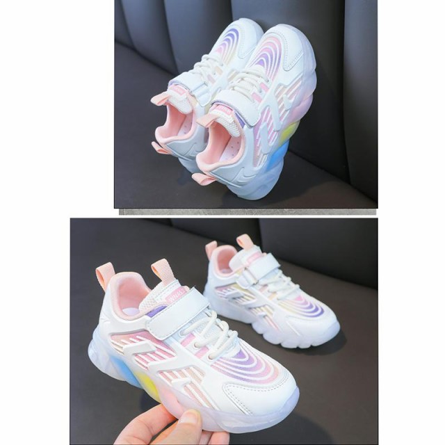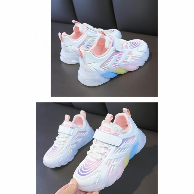 子供スニーカー柔らかい 女の子 キッズシューズ 可愛い靴 スポーツ靴 スニーカー 虹色 カラフル 厚底スニーカー 通気 歩きやすい ダッド