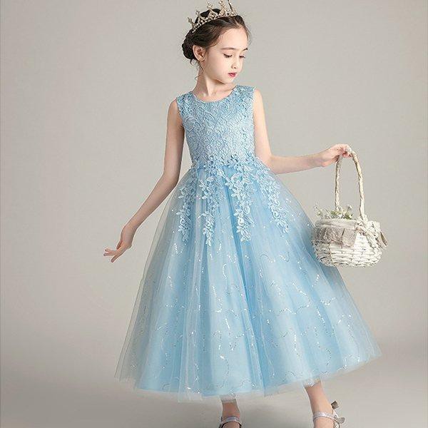 子供ドレス結婚式 ワンピース 子供ドレス ピアノ発表会 ロング 水色 白 子供用ドレス 発表会 ホワイト フォーマルワンピース110?160