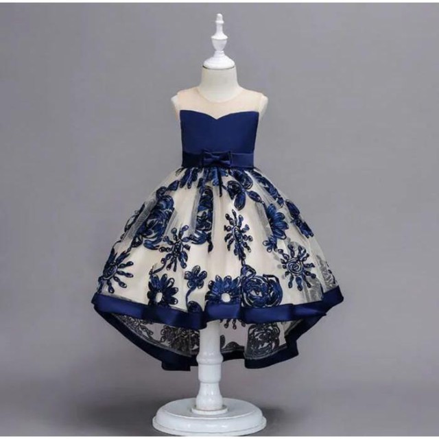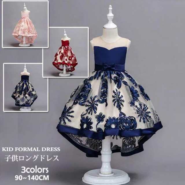 ネイビー 100cm刺繍柄 子供ドレス ドレス 子供 女の子 結婚式 発表会 チュールスカート ロングドレス ワンピース