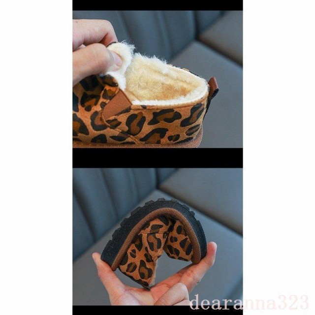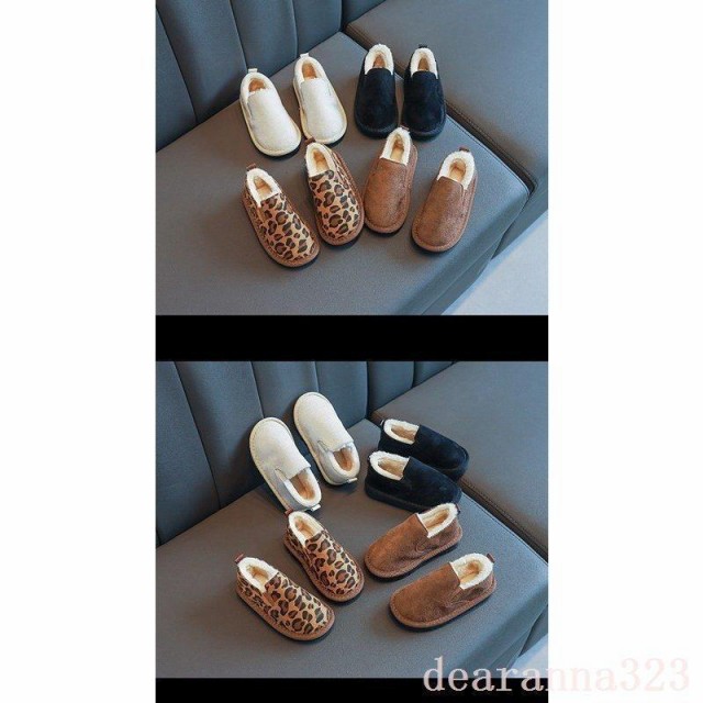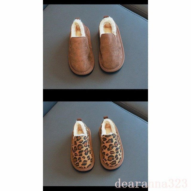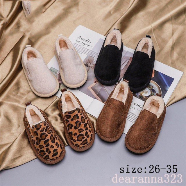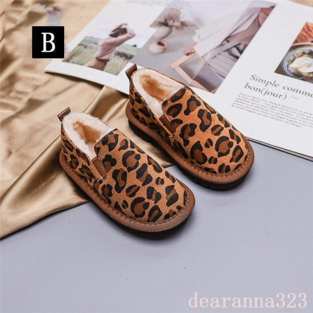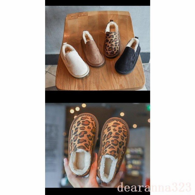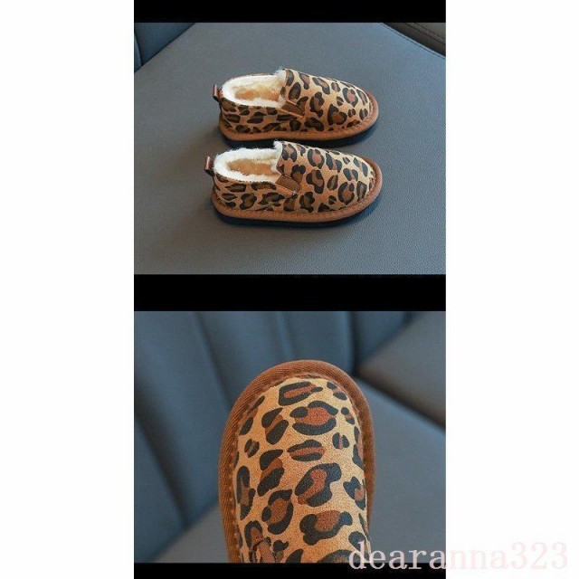 ファーシューズスノーブーツ子供靴スリッポンシューズ女の子男の子豹柄子供用冬用モカシンシューズ厚手裏起毛モコモコ暖かい男女兼用可愛い