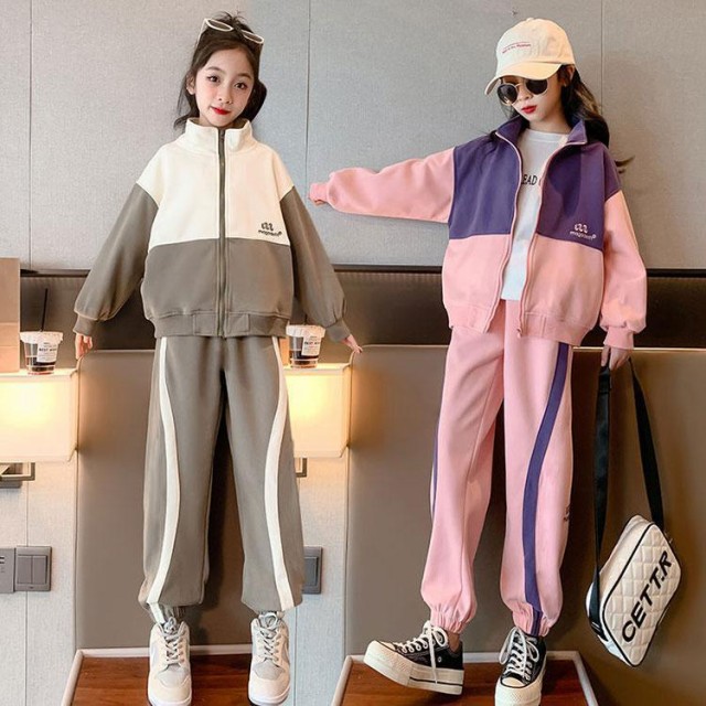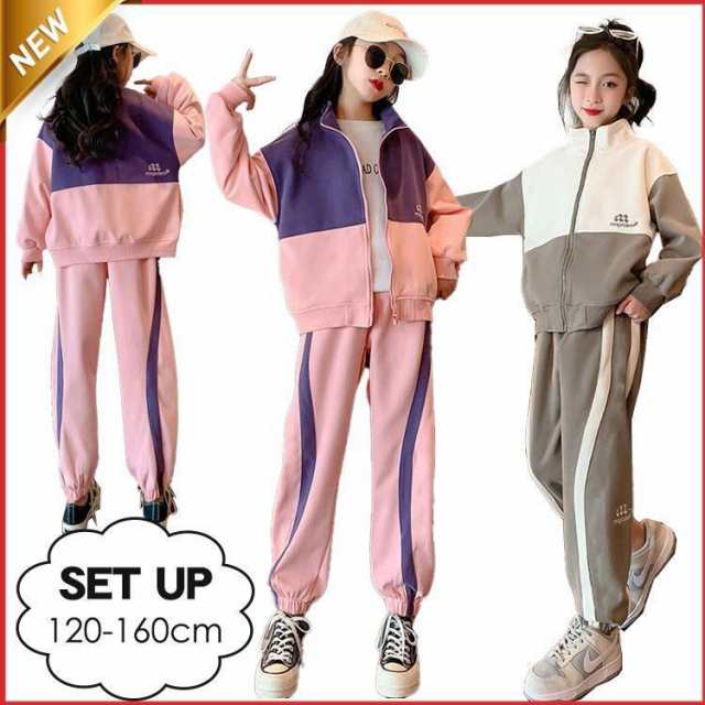 ジャージ 上下 ダンス キッズ 女の子 ジュニア 120 130 140 150 160 春秋 ジッパー付き スウェット 長袖 ガールズ トレーナー