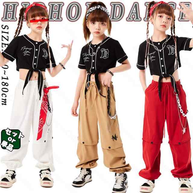 茶色 白 赤 黒 へそ出し ベースボールシャツ キッズ ダンス衣装 セットアップ ショートトップス ロングパンツ tシャツ 女の子 ストレート ジャズダンス ポッピング チアガール おしゃれ ファション 団体服 発表会 演出服 応援団 原宿系 個性派 韓国K-POP