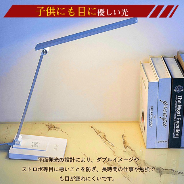デスクライト led 学習机 読書灯 卓上ライト 目に優しい 折りたたみ 子供 省エネ 置くだけでスマホ充電
