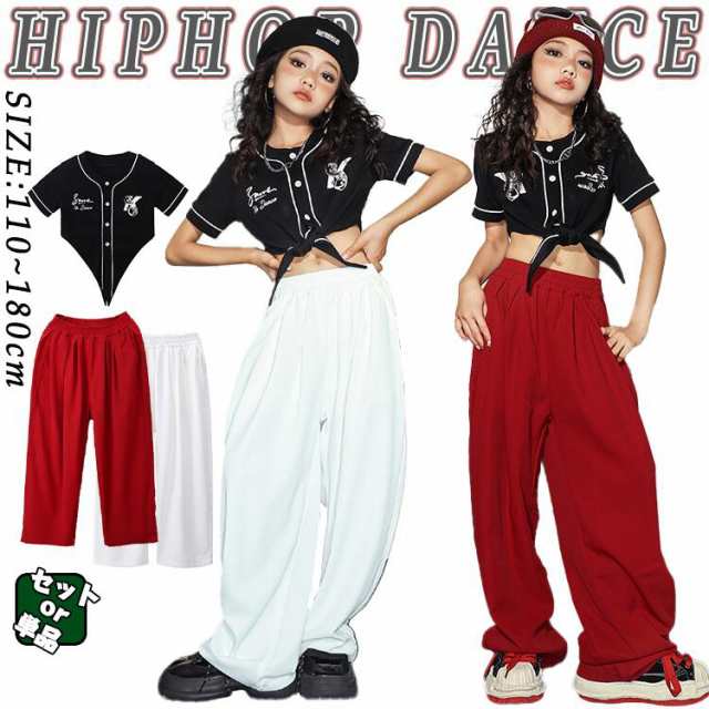 黒 赤 白 ショートトップス キッズダンスセットアップ 女の子 ジャズダンス 応援団 原宿系 カジュアルパンツ ベースボールシャツ 韓国風 チア衣装 ゆったり 派手 練習用