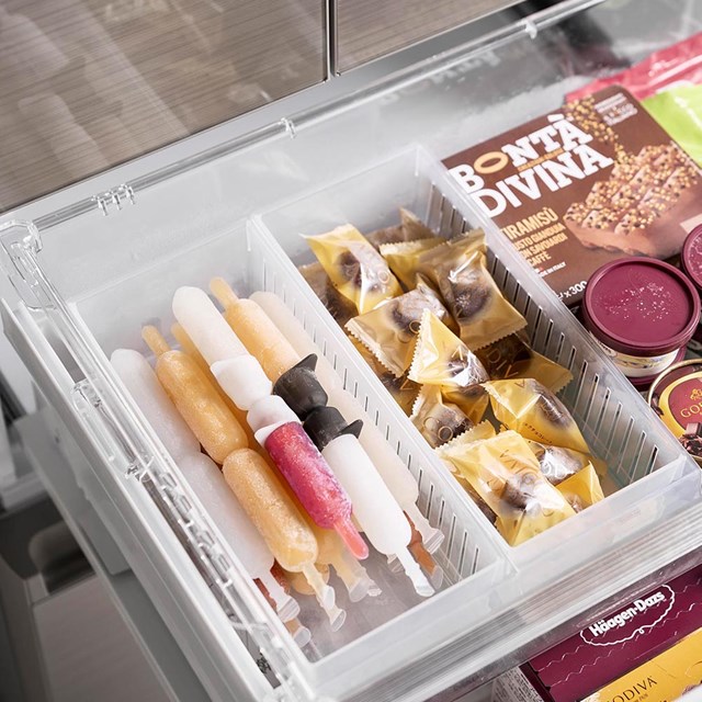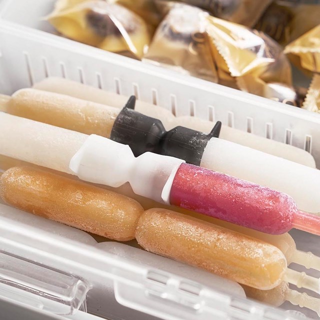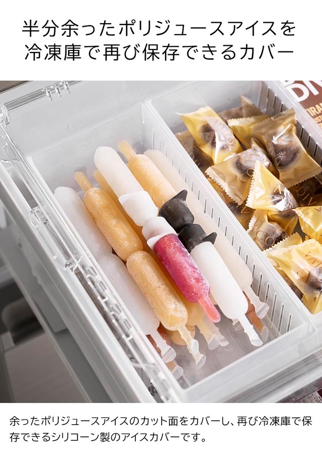 残った半分の断面をカバーして冷凍庫に戻すことができるアイスカバーです。 |