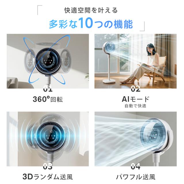 AI自動で快適!サーキュレーター dcモーター 扇風機 リビングファン 折りたたみ リモコン 静音 省エネ リビング扇風機 3D首振り 高さ調節 持ち運べる