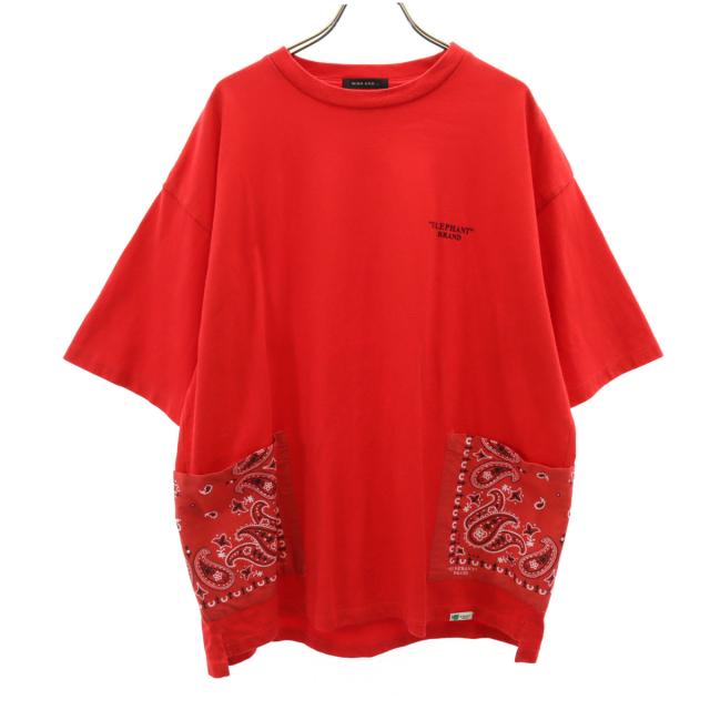ニコアンド ELEPHANT BRAND エレファント ブランド別注 半袖 Tシャツ M レッド niko and... バンダナポケット メンズ