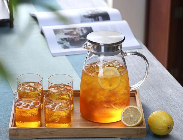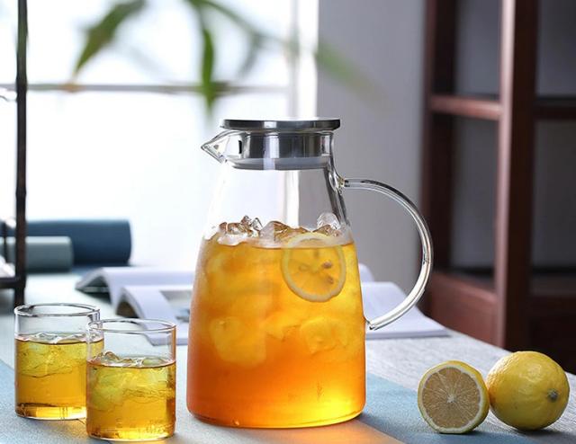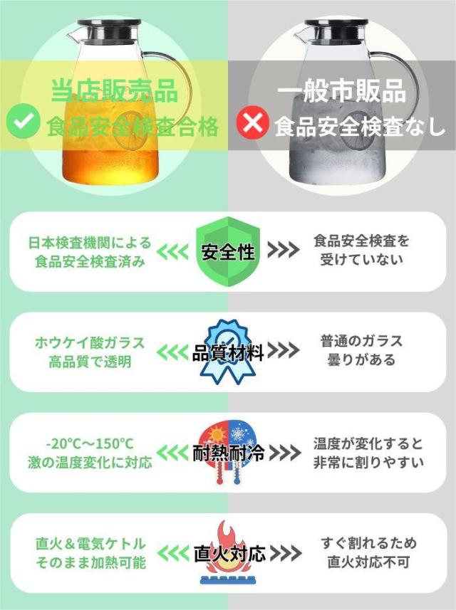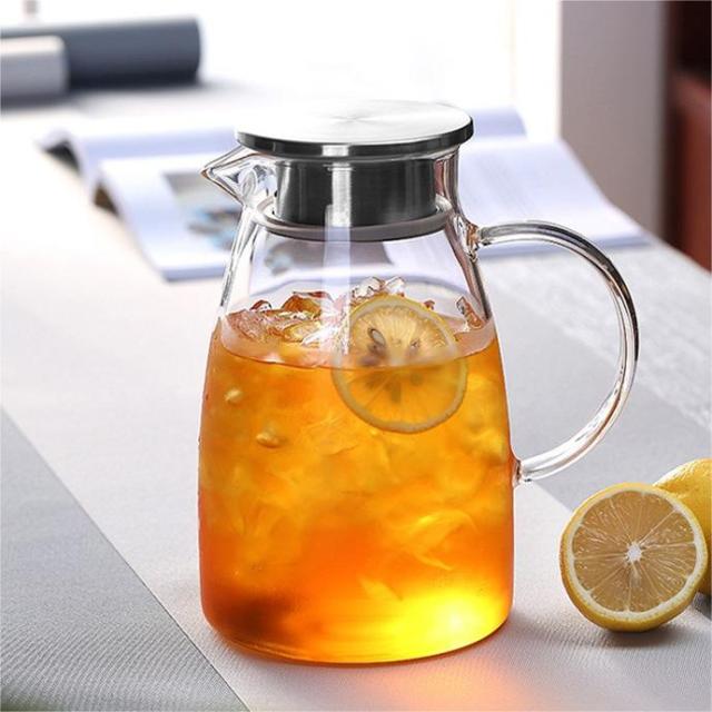 ガラス ピッチャー 蓋付き 2000ml 麦茶ポット耐熱 取手ティーポット 耐熱 水 冷蔵庫 麦茶 ポット 耐熱ガラス 大容量 ガラス ピッチャー 洗いやすい 冷水筒 冷水ポット 麦茶入れ 水だし 紅茶ポット やかん 北欧 ヤカン 直火