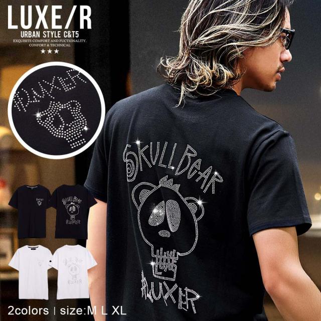 Tシャツ メンズ 半袖 ブランド 半袖Tシャツ トップス カットソー ラインストーン スカルベア クマ くま ドクロ ロゴ ワンポイント ホワイト ブラック 白T 白Tシャツ LUXE R ラグジュ 20代 30代 40代 ユニセックス 男性 男 服 春 夏 夏服 春夏 ファッション [46067]