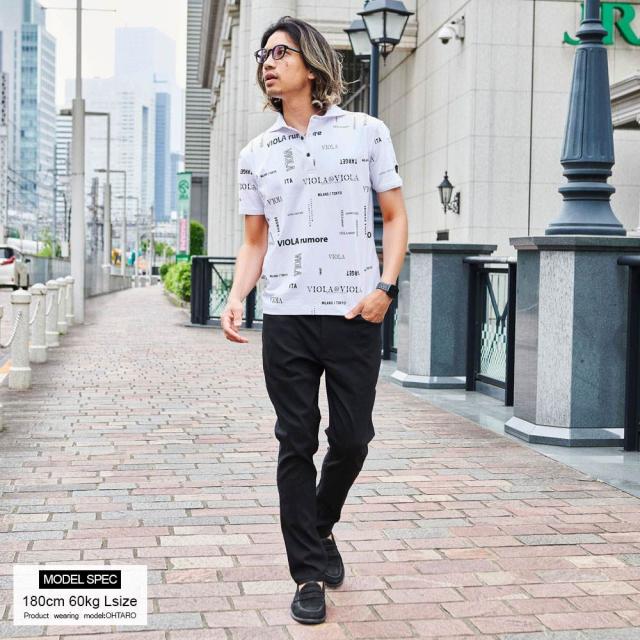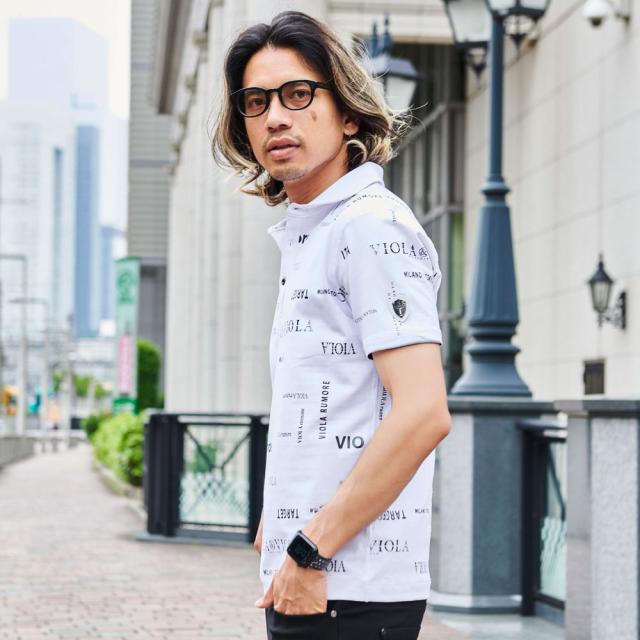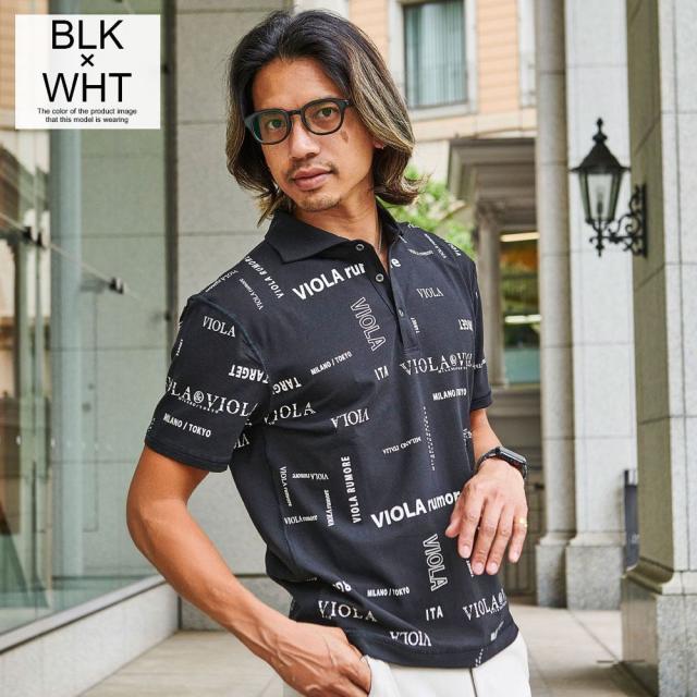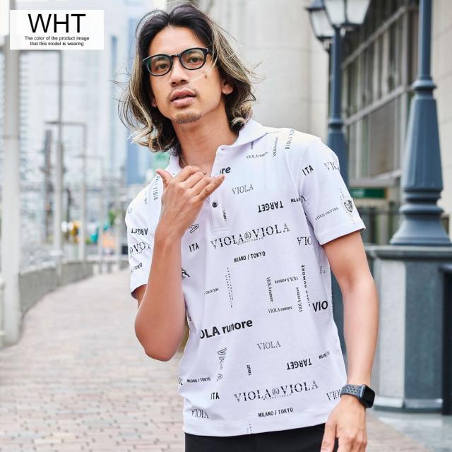 ポロシャツ メンズ ブランド おしゃれ 半袖 ロゴ エンブレム プリント 総柄 トップス カットソー ホワイト ブラック 白 ブラック ヴィオラ VIOLA きれいめ 大人 カジュアル キレカジ 上品 ホワイト ブラック 白 黒 M L XL LL 春 夏 メンズファッション [Y52306]