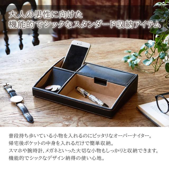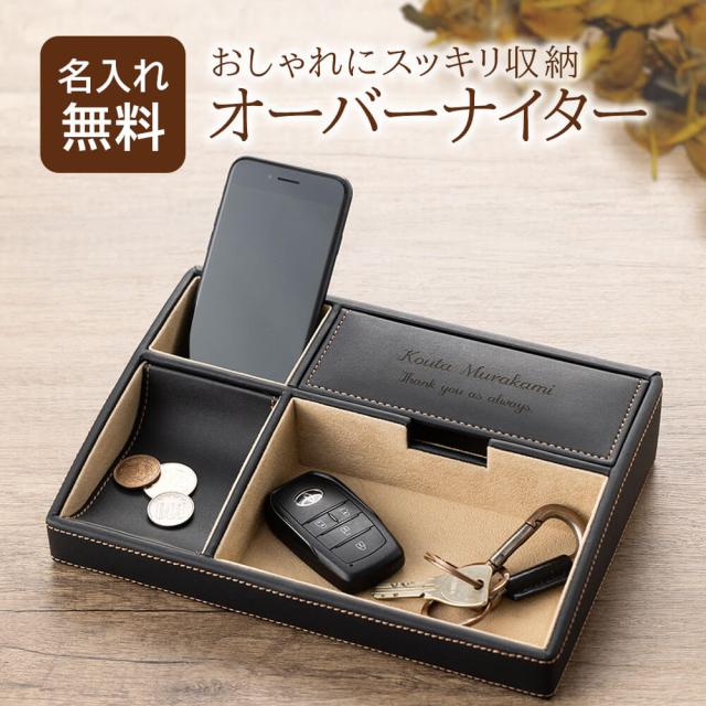 名入れ ギフト おしゃれ 還暦祝い 誕生日プレゼント 男性 メンズ プレゼント 収納 ケース 卓上 レザー 小物入れ 名前入り オーバーナイター デスク トレイ ブラック 黒 贈り物 退職祝い 結婚記念日 就職祝い 父親 祖父 夫 彼氏 息子 甥っ子 革