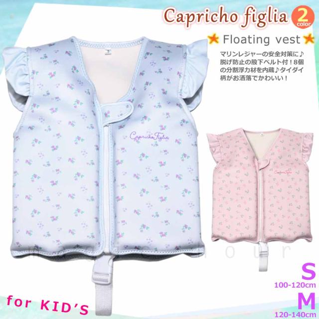 ◆ Capricho figlia 子供 ライフジャケット こども用 キッズ ジュニア ライフベスト ピンク ブルー 小花柄 フリル ◆