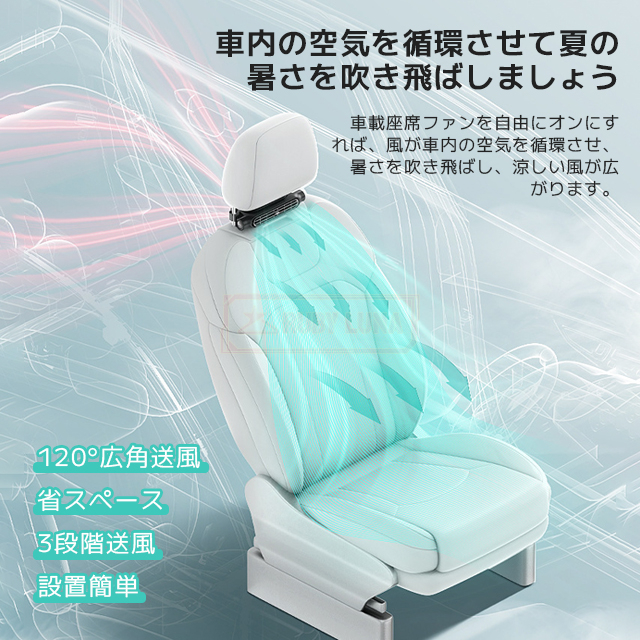 最安挑戦 春新作 送料無料 新作 車載 扇風機 シートファン サーキュレーター 車内扇風機 車用シートファン 後部 座席 運転席 USB扇風機 3段階風量 USB給電 設置簡単 カーファン 省エネ 静音小型 車 自動車用 背中 首もと 涼しい 空調