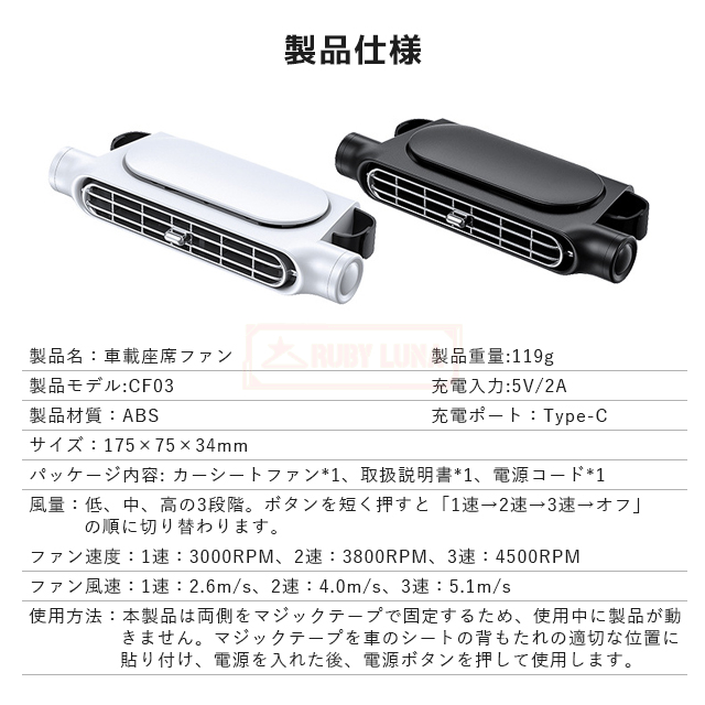 | 品名 | ◆車載座席ファン |