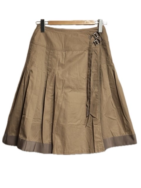【中古】インゲボルグ INGEBORG ラップ 巻き フレア スカート 11 切替 コットン リネン 麻 ベージュ ボトムス