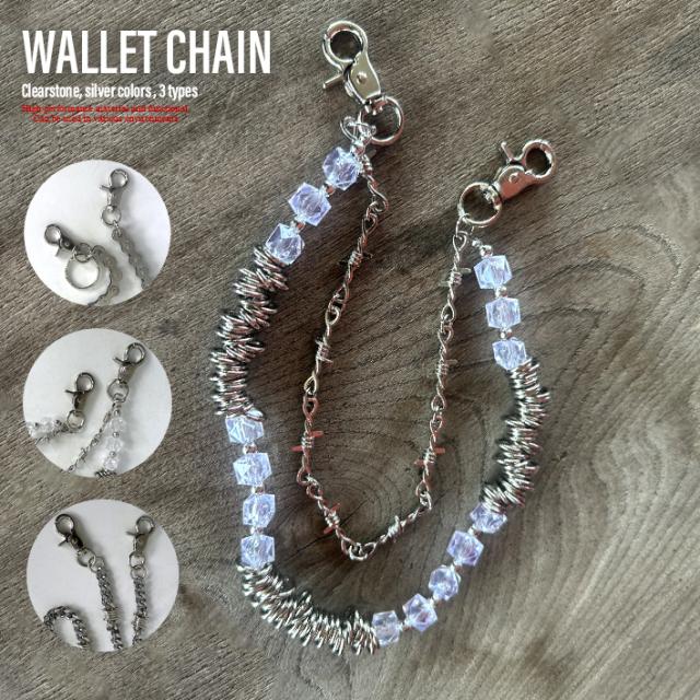 ウォレットチェーン 夏新作 メタル シルバー クリアストーン ドライブチェーン キーリング キーチェーン 財布