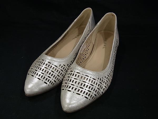 ■美品■ REGAL リーガル レザー パンプス フラットシューズ 表記サイズ 22.5cm 靴 レディース シルバー系×ベージュ系 DI2408