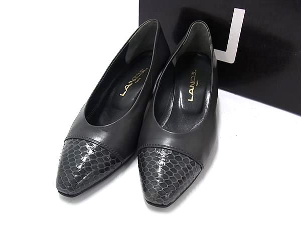 ■美品■ LANCEL ランセル パイソン型押しレザー×レザー ヒール パンプス 表記サイズ 23 靴 シューズ レディース ブラック系 DI2409