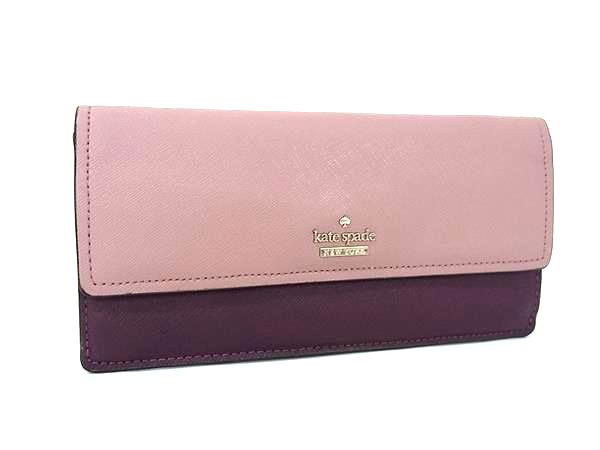 ■美品■ kate spade ケイトスペード PWRU5532 レザー 二つ折り 長財布 ウォレット レディース ピンク系×ワインレッド系 DH8750
