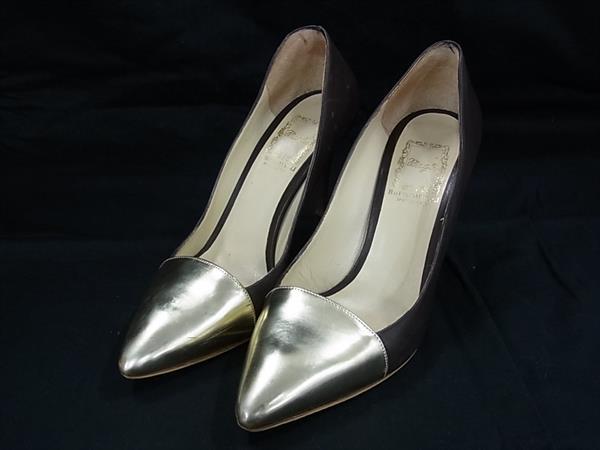 BRUNOMAGLI ブルーノマリ レザー ヒール パンプス 表記サイズ36 1/2(約23.5cm) シューズ 靴 ブラウン系×ゴールド系 DH5682