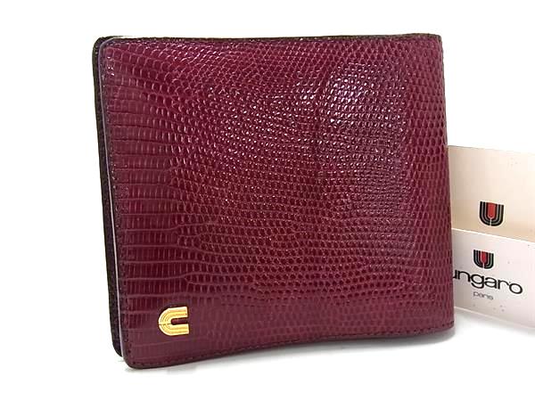 ■美品■ ungaro ウンガロ リザード型押しレザー 二つ折り 財布 ウォレット 小銭入れ 札入れ レディース ワインレッド系 DH5620