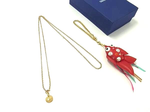 ■極美品■ SWAROVSKI スワロフスキー 金魚 チャーム キーホルダー ネックレス 2点セット ゴールド系×レッド系 FH2826