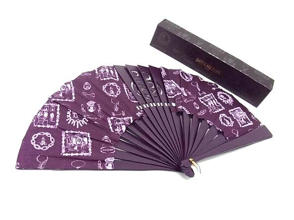 ■極美品■ BOUCHERON ブシュロン 総柄 扇子 団扇 うちわ せんす メンズ レディース パープル系 FD8859