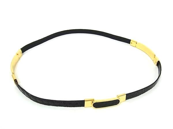 ■極上■本物■美品■ クロコダイル ベルト 表記サイズ 75 レディース ブラック系×ゴールド系 DG5075