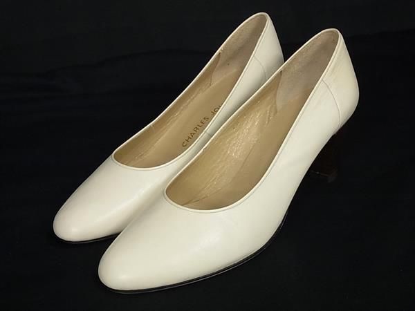 ■美品■ CHARLES JOURDAN シャルル ジョルダン レザー ヒール パンプス 表記サイズ5 1/2(約22.5cm) 靴 シューズ アイボリー系 DG2475