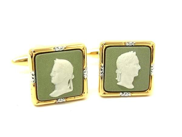 ■美品■ WEDGWOOD ウェッジウッド カメオ ジャスパー カフスボタン カフリンクス アクセサリー グリーン系×ゴールド系 DG1778