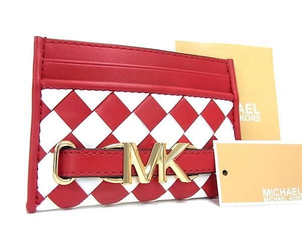 ■新品■未使用■ MICHAEL KORS マイケルコース レザー 編み込み カードケース カード入れ レッド系×ホワイト系 BL4062