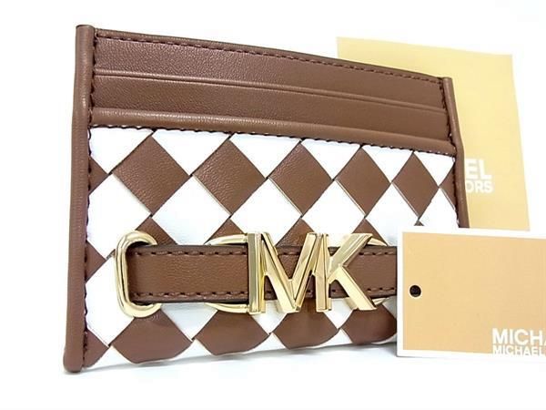 ■新品同様■ MICHAEL KORS マイケルコース レザー 編み込み カードケース カード入れ ブラウン系×ホワイト系 BL4065