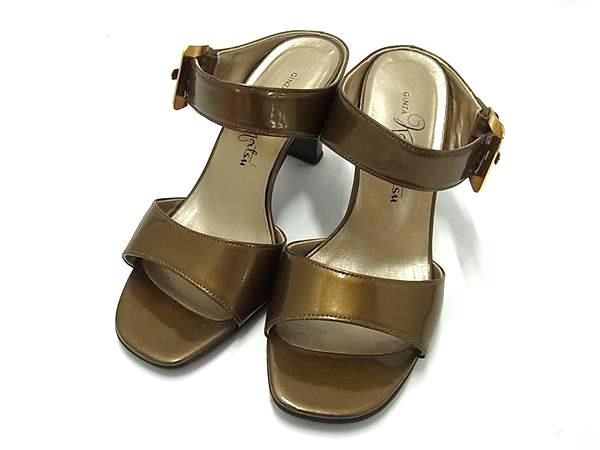 ■美品■ GINZA Kanematsu 銀座かねまつ パテントレザー サンダル 表記サイズ 22 1/2 シューズ 靴 レディース ブラウン系 DF9480