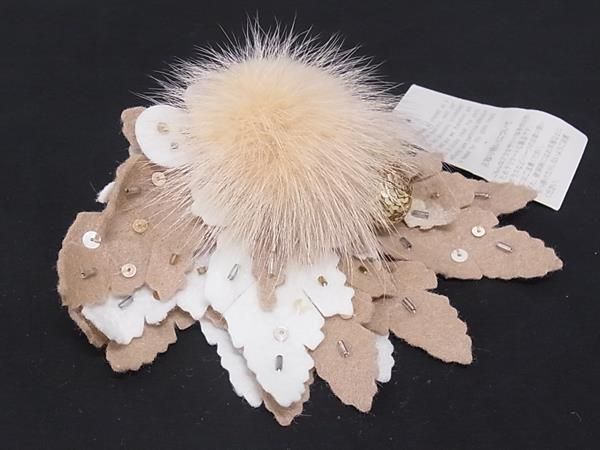 ■新品■未使用■ ANTEPRIMA アンテプリマ フェルト×ファー ビーズ ピンバッジ ピンブローチ レディース ブラウン系 FE3241