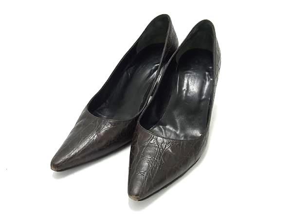 BRUNOMAGLI ブルーノマリ クロコダイル型押しレザー ヒール パンプス 表記サイズ36 1/2(約23.5cm) 靴 レディース ブラウン系 DF6361