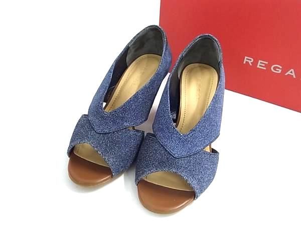 REGAL リーガル デニム ヒール オープントゥ パンプス 表記サイズ 23 (約23cm) 靴 シューズ レディース ブルー系×ブラウン系 DF4314