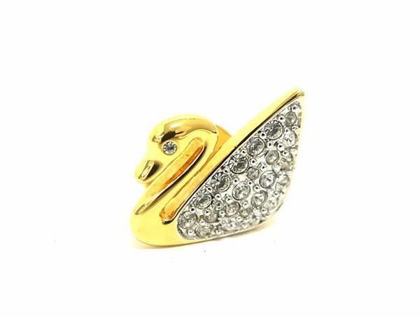 ■極美品■ SWAROVSKI スワロフスキー ラインストーン ピンバッチ ピンブローチ アクセサリー ゴールド系×シルバー系 DF2566