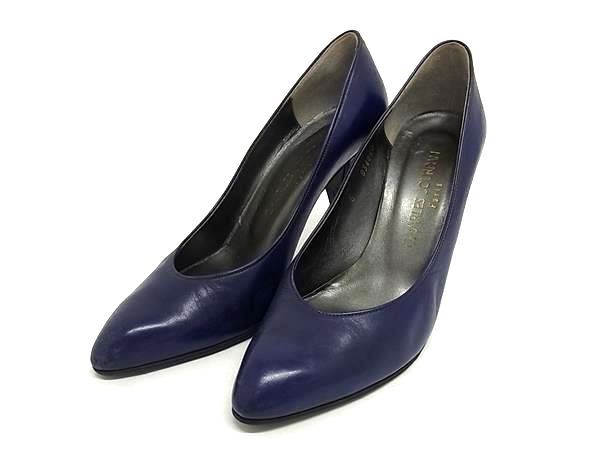 CHARLES JOURDAN シャルル ジョルダン レザー ヒール パンプス 表記サイズ 6 (約23.0cm) 靴 シューズ レディース ネイビー系 DE7038