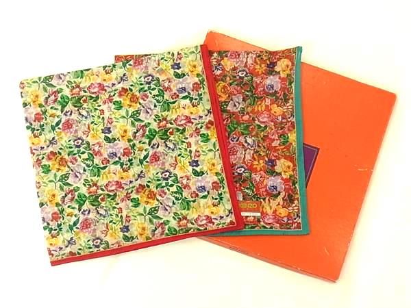 ■新品同様■ KENZO ケンゾー コットン100% フラワー 花柄 ハンカチーフ ポケットチーフ 2点セット レディース マルチカラー DE5903
