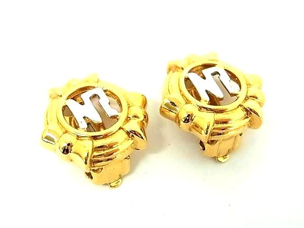 ■極美品■ NINA RICCI ニナリッチ クリップ式 イヤリング アクセサリー レディース ゴールド系×シルバー系 DD7925