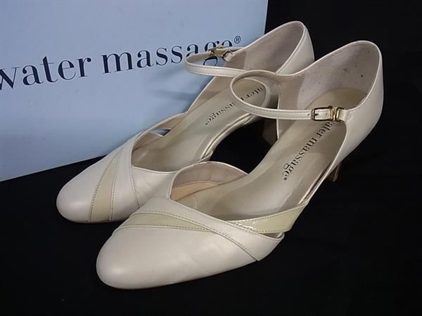 ■美品■ water massage ウォーター マッサージ レザー ヒール パンプス 表記サイズ24 靴 レディース アイボリー系 DE3746