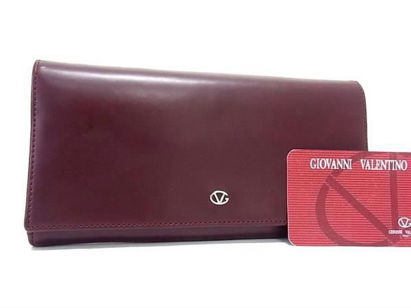 ■美品■ GIOVANNI VALENTINO ジョバンニ バレンチノ レザー 三つ折り 長財布 ウォレット 札入れ 小銭入れ ボルドー系 DE3980
