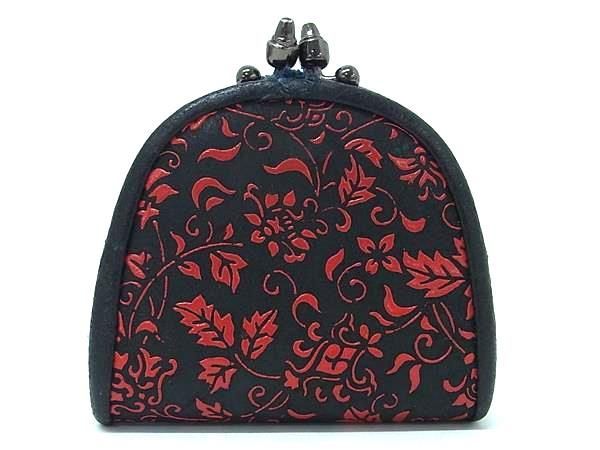INDEN-YA 印傳屋 インデンヤ 鹿革 漆塗り 花唐草 がま口 コインケース コインパース 小銭入れ ブラック系×レッド系 DD6669