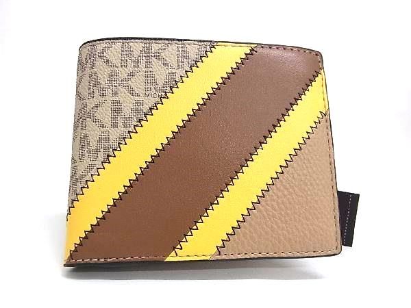 ■新品■未使用■ MICHAEL KORS マイケルコース MK柄 PVC 二つ折り 財布 ウォレット 札入れ 小銭入れ アイボリー系×ブラウン系 BI1667